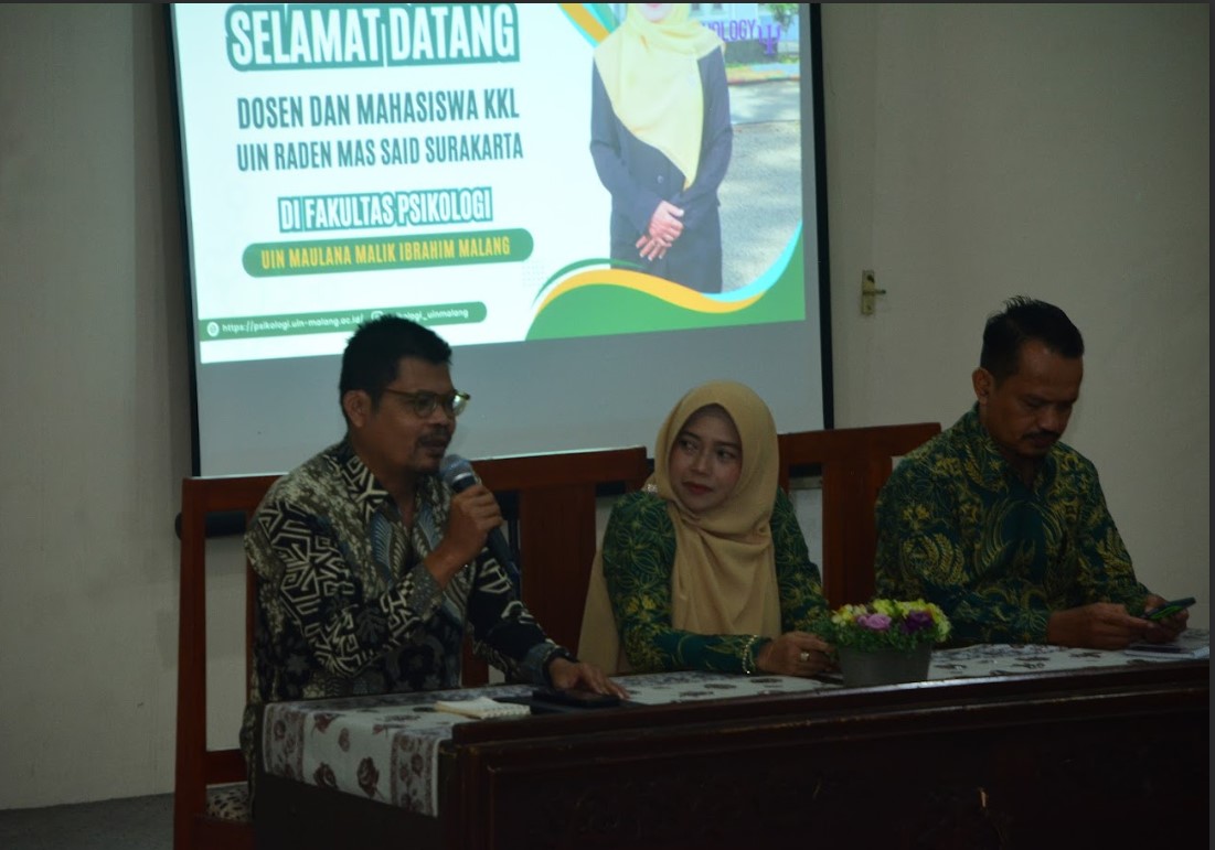Dalam sambutannya, Koordinator Program Studi Psikologi Islam UIN Raden Mas Said Surakarta, Triyono, M.Si., menyampaikan bahwa kunjungan akademik ke Fakultas Psikologi UIN Malang bertujuan untuk mempelajari secara langsung pengembangan keilmuan psikologi yang terintegrasi dengan nilai-nilai Islam. Menurutnya, UIN Maulana Malik Ibrahim Malang dikenal sebagai salah satu pionir integrasi ilmu pengetahuan melalui paradigma Pohon Ilmu, bahkan sejak institusi ini masih berstatus STAIN Malang.