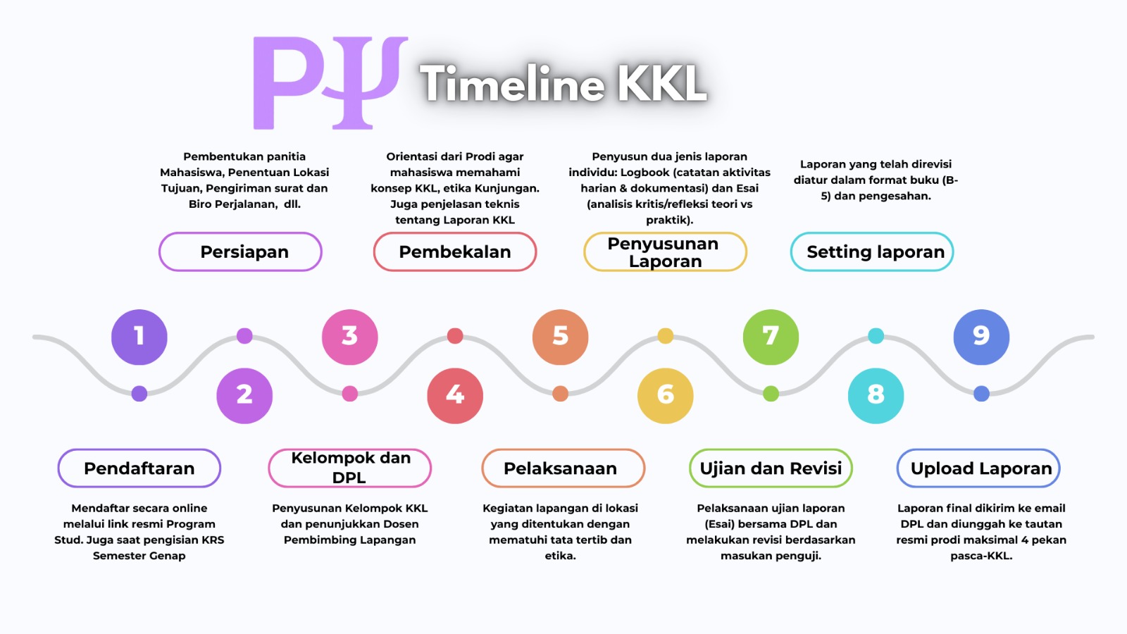 Pelaksanaan KKL Program Studi Psikologi Islam UIN Raden Mas Said Surakarta menekankan penguatan pemahaman mahasiswa terhadap penerapan kajian psikologi dalam berbagai bidang, mulai dari psikologi perkembangan, pendidikan, industri dan organisasi, klinis, hingga sosial kemasyarakatan. Oleh karena itu, pembekalan dipandang sebagai prasyarat strategis agar mahasiswa memiliki kesiapan mental, akademik, dan profesional sebelum berinteraksi langsung dengan instansi mitra.
