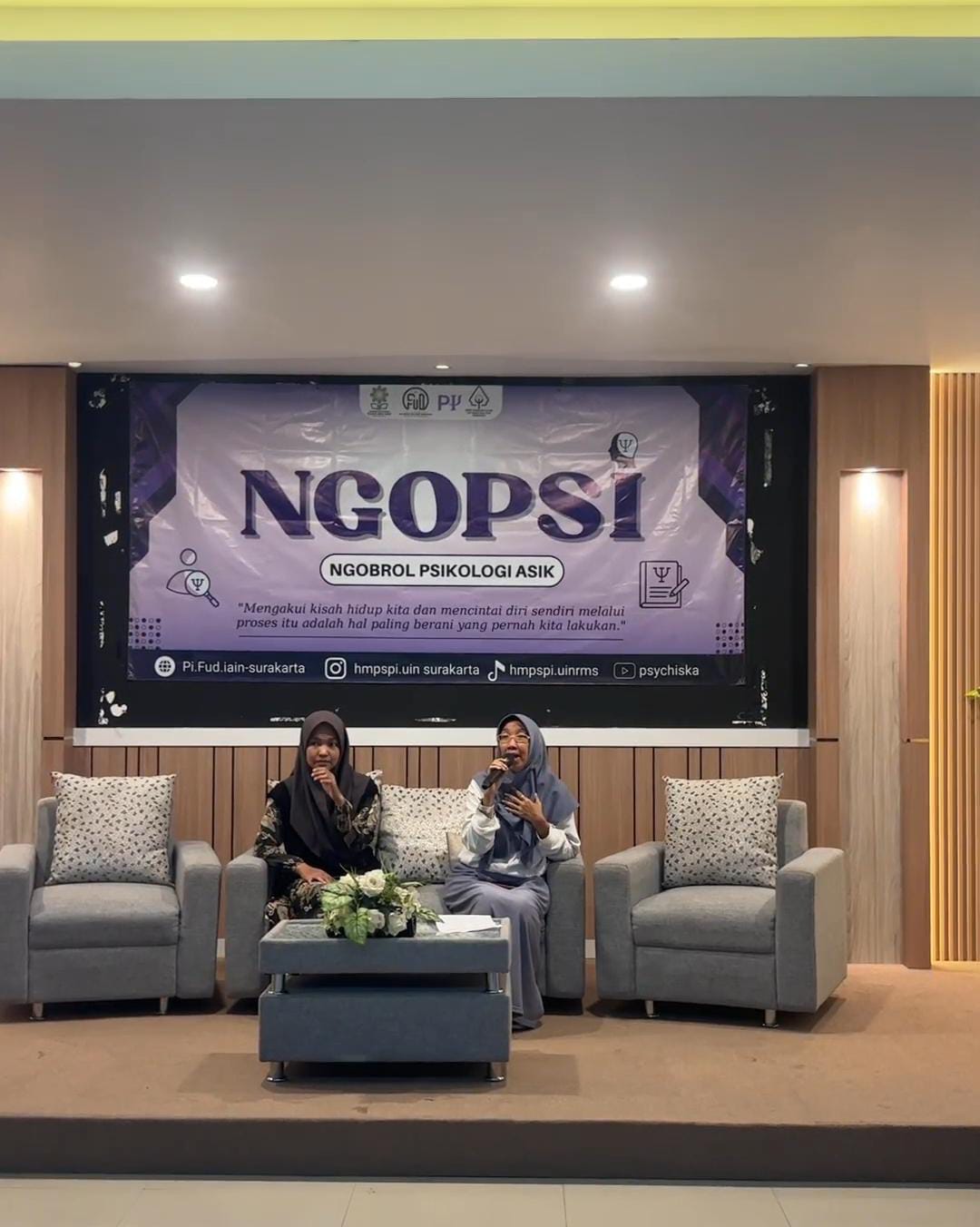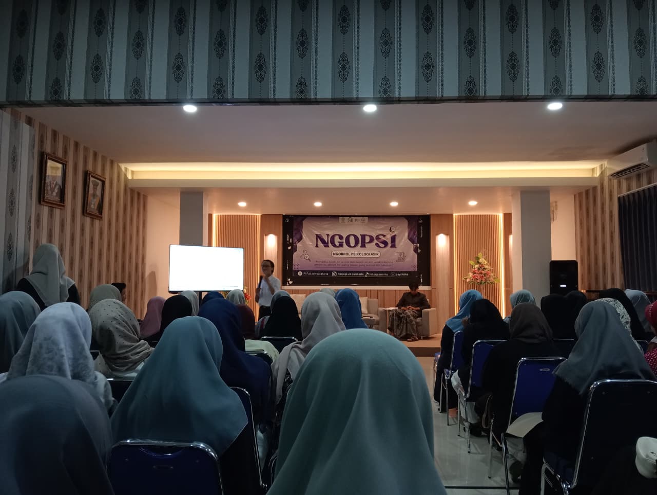 Surakarta, Selasa, 24 Februari 2026, bertempat di Aula Fakultas Ushuluddin dan Dakwah, Himpunan Mahasiswa Program Studi Psikologi Islam (HMPS PI) Fakultas Ushuluddin dan Dakwah Universitas Islam Negeri Raden Mas Said Surakarta menggelar kegiatan diskusi rutin NGOPSI yang bertema “Antara Sabar dan Burnout: Kapan Bertahan, Kapan Berubah”. Acara dihadiri oleh mahasiswa Psikologi Islam lintas angkatan, pengurus HMPS, Ketua Program Studi (Kaprodi), serta tamu undangan.