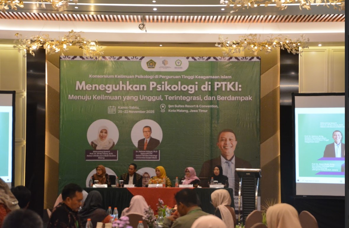 Kegiatan Konsorsium tahun 2025 terselenggara melalui kerja sama antara K2P-PTKI dan Fakultas Psikologi UIN Maulana Malik Ibrahim Malang. Suasana ilmiah terasa sejak pembukaan pada Kamis siang, yang ditandai dengan sambutan Rektor UIN Maulana Malik Ibrahim Malang, Prof. Dr. Hj. Ilfi Nur Diana, M.Si. Beliau menegaskan pentingnya konsolidasi antarprogram studi dalam upaya memperkuat identitas psikologi berbasis nilai keislaman, sekaligus merespons tantangan akademik dan sosial di tingkat nasional maupun global.